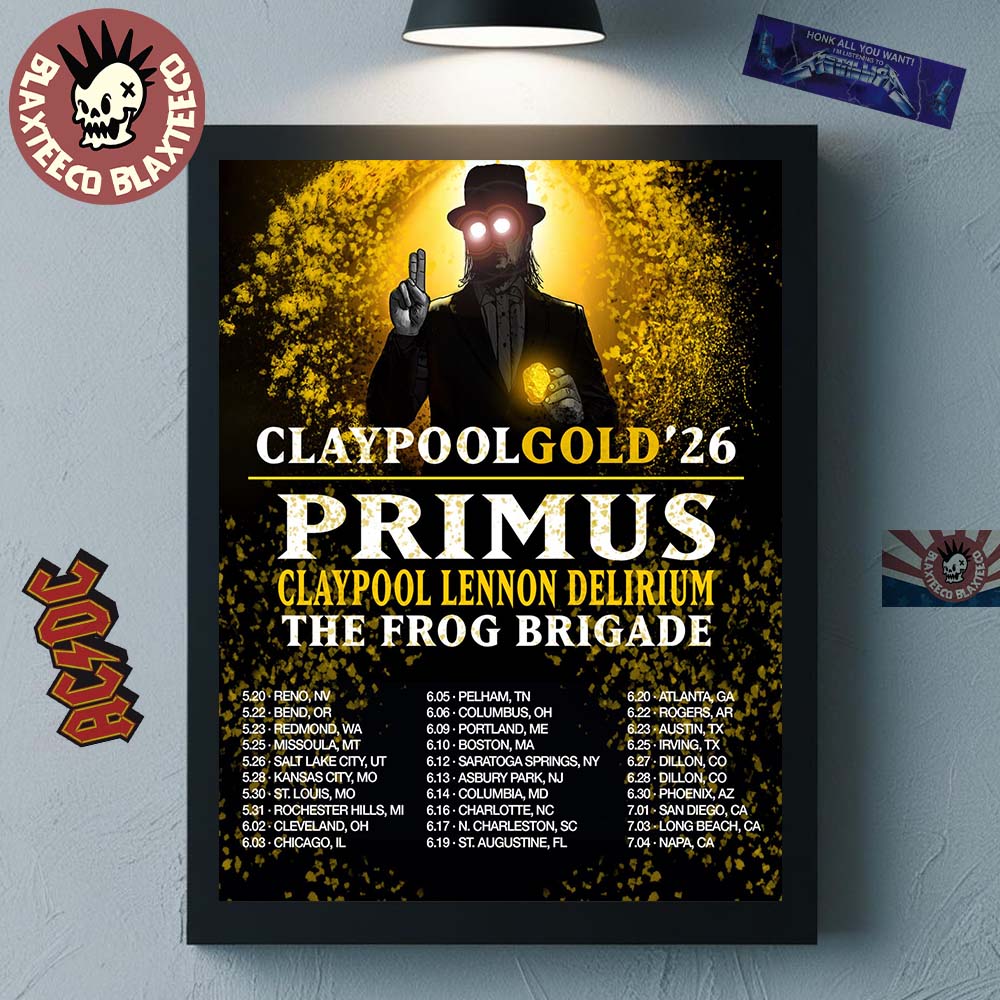 Blaxteeco: About Les Claypool Claypool Gold 2026 Summer Tour With Primus Claypool Lennon Delirium And The Frog Brigade North America City Dates Poster Canvas Introduction