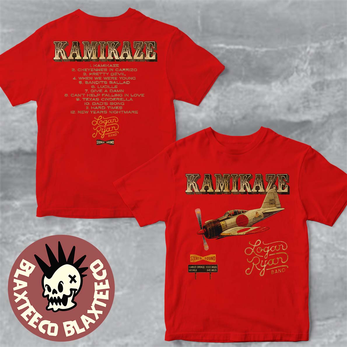 Blaxteeco: About Logan Ryan Band Kamikaze Debut Album Drops January 23 2026 Cover Art With Tracklist Two Sided T-Shirt:
