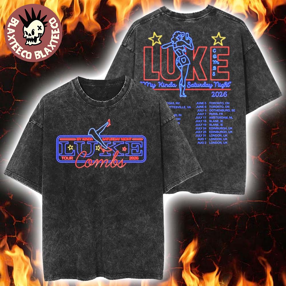 Blaxteeco: About Luke Combs My Kinda Saturday Night Tour 2026 Merch Neon Girl Light Tour Vintage Washed Tee: