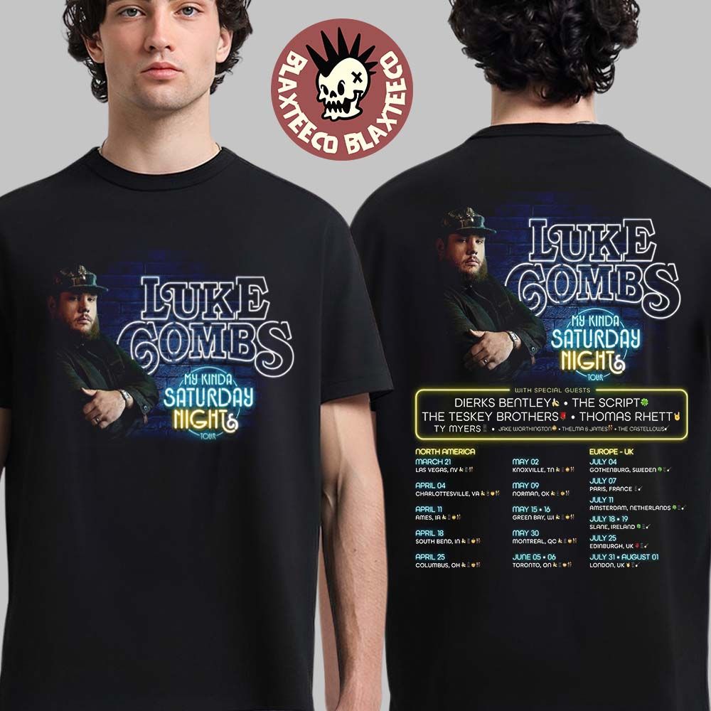 Blaxteeco: About Luke Combs My Kinda Saturday Nights Tour 2026 North America Europe And Uk Schedule Dates Two Sided T-Shirt: