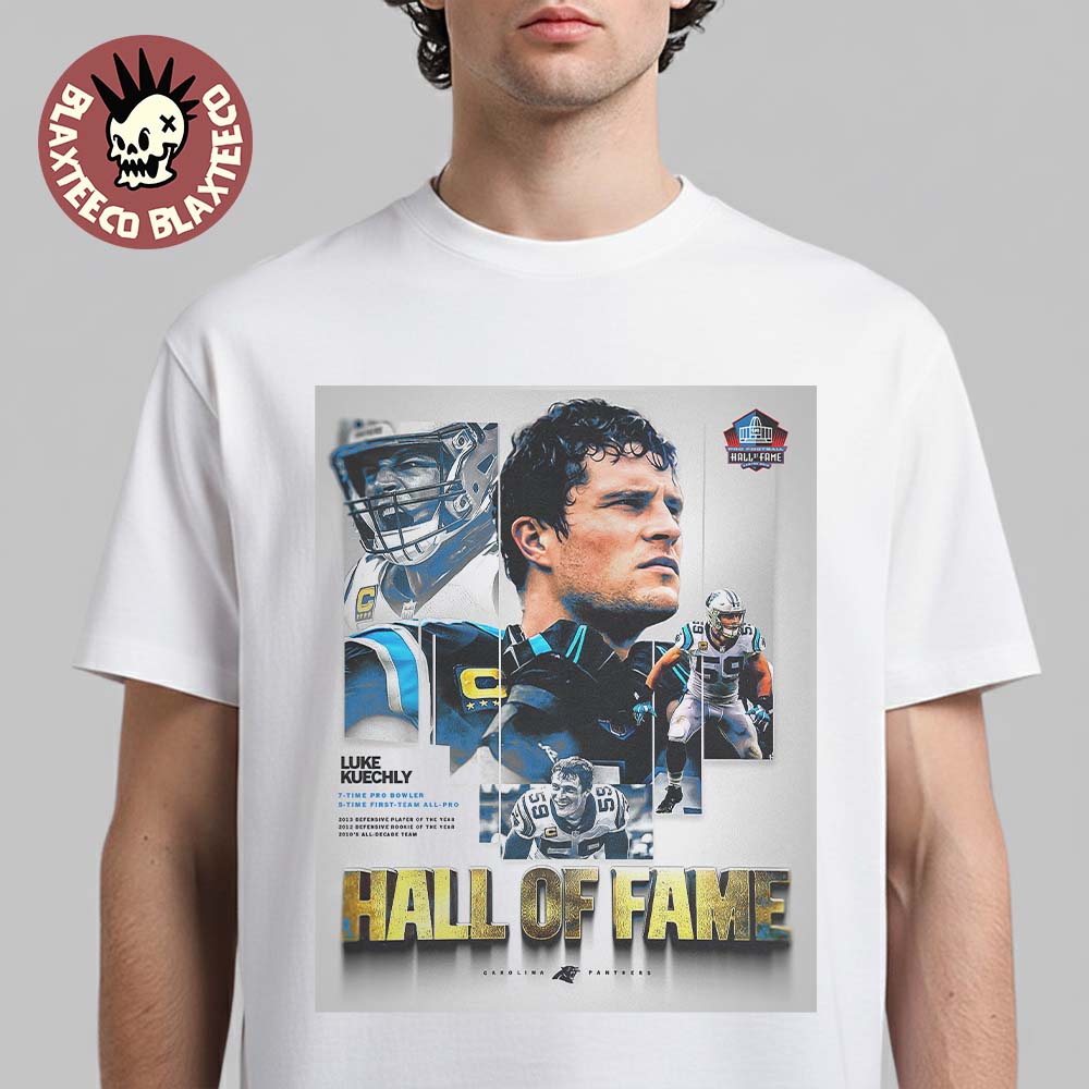 Blaxteeco: About Luke Kuechly From Carolina Panthers NFL 2026 Pro Football Hall Of Fame Inductee 59 Forever Enshrined T-Shirt: