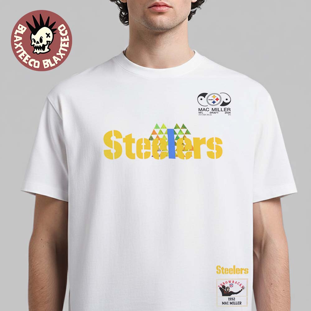 Blaxteeco: About Mac Miller X Pittsburgh Steelers Mitchell And Ness NFL Draft 2026 Slide Park T-Shirt: