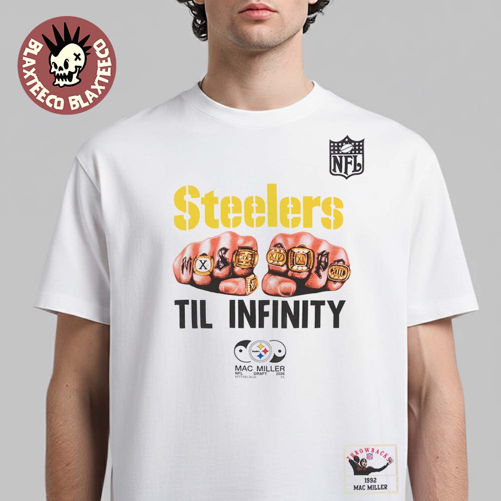 Blaxteeco: About Mac Miller X Pittsburgh Steelers Mitchell And Ness NFL Draft 2026 Til Infinity T-Shirt: