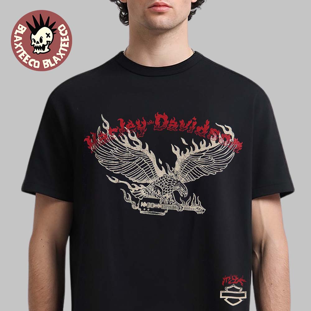 Machine Gun Kelly Harley Davidson X MGK Lost Americana Merch Flame Eagle With Guitar T-Shirt Features: