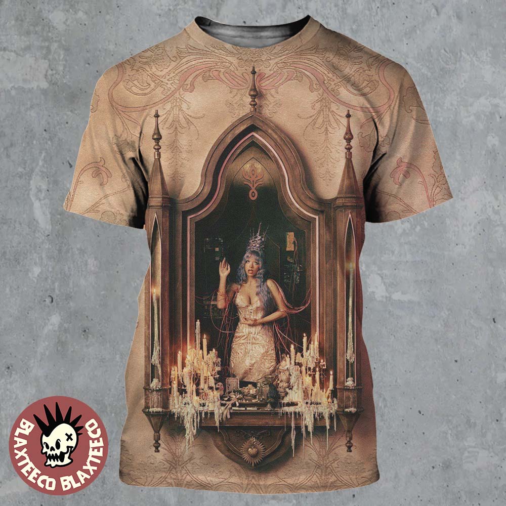 Inspired by the haunting visuals of Melanie Martinez’s HADES studio album, the Melanie Martinez HADES Studio Album Cover Art All Over Print Shirt is a bold statement piece for fans who appreciate dark fantasy, emotional symbolism, and expressive fashion. This all-over print design showcases an intricate, gothic-style illustration framed with ornate architectural details and candlelit elements, creating a dramatic and immersive look. The warm, vintage-inspired tones give the shirt a timeless aesthetic while staying true to the surreal and theatrical mood of the HADES era. With its full-coverage print, this shirt transforms album artwork into wearable art, making it a standout addition to any Melanie Martinez merch collection.