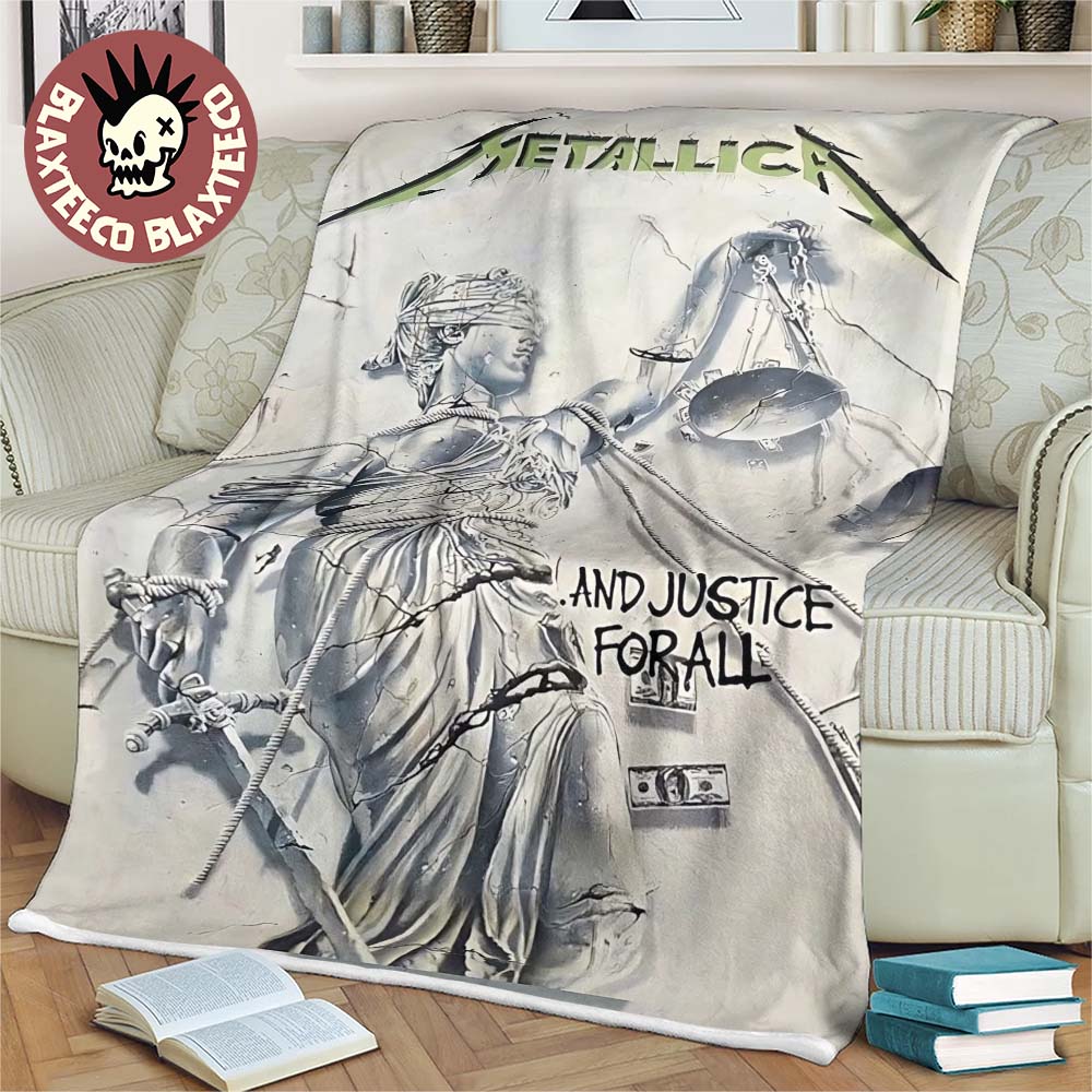 Bring the legendary power and intensity of Metallica into your home with the Metallica And Justice For All Album Cover Art Throw Fleece Blanket. Featuring the iconic 1988 album artwork with the bound and blindfolded Lady Justice, this throw blanket captures the rebellious energy and thrash-metal legacy that defined one of Metallica’s most celebrated albums. Perfect for longtime fans, collectors, or anyone wanting to showcase their love for heavy metal, the bold, high-contrast design transforms any space into a tribute to Metallica’s enduring influence. Its striking imagery makes it a standout piece that celebrates the raw power and iconic aesthetic of …And Justice For All.