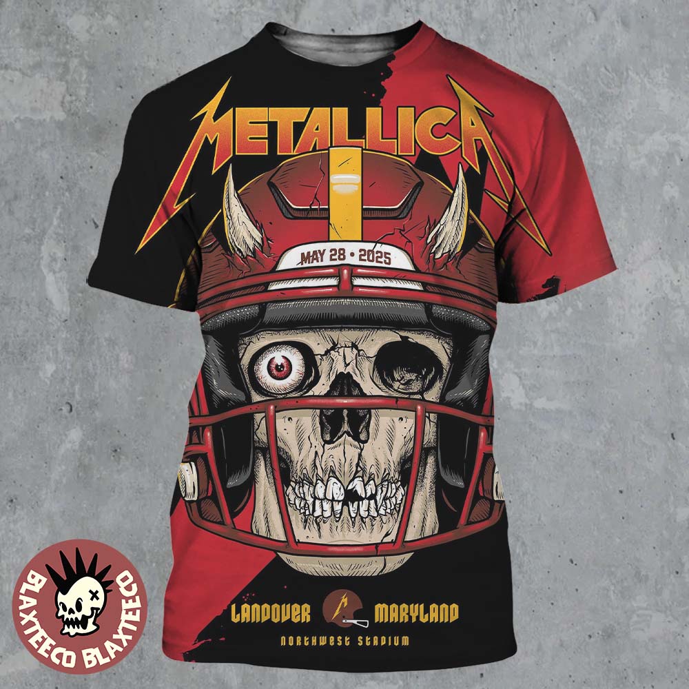 Metallica M72 Landover 2025 Pop Up Shop Poster Landover Maryland At Northwest Stadium On May 28 2025 Washington Commanders Skull With Helmet Art All Over Print Shirt Features: