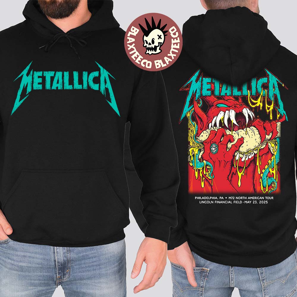 Blaxteeco: About Metallica M72 Philly 2025 Night 1 Venue Hoodie In Philadelphia Pennsylvania At Lincoln Financial Field On May 23 2025 Red Demon Art Two Sided Unisex Hoodie: