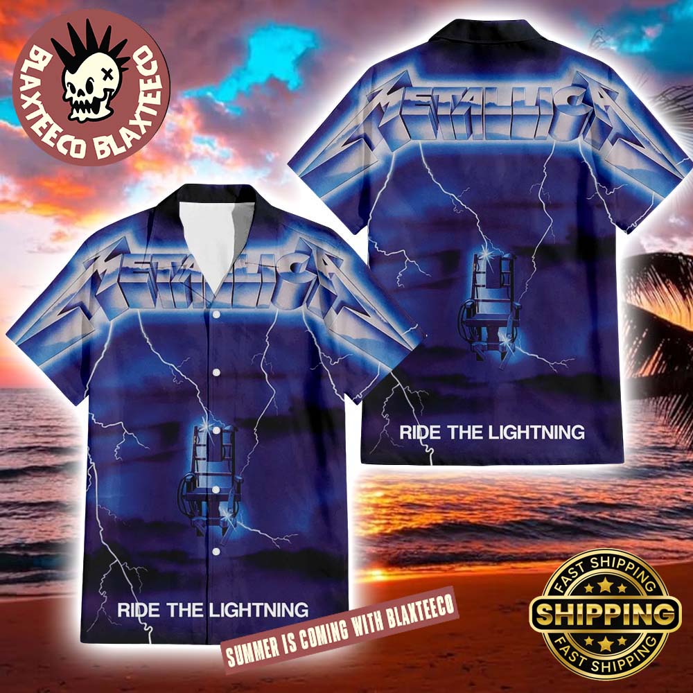Bring a bold fusion of metal heritage and summer style to your wardrobe with the Metallica Ride The Lightning Album Cover 2025 Summer Hawaiian Shirt. Inspired by the iconic 1984 album, this vibrant button-up features the legendary electric chair artwork, crackling blue lightning, and the unmistakable Metallica logo displayed across both the front and back. Crafted with a lightweight, breathable fabric, this Hawaiian shirt delivers the perfect balance between comfort and attitude—ideal for beach days, festivals, concerts, or casual streetwear. Its vivid high-resolution print ensures the classic artwork stands out in any setting, making it a must-have piece for fans celebrating Metallica’s enduring legacy in 2025 and beyond.