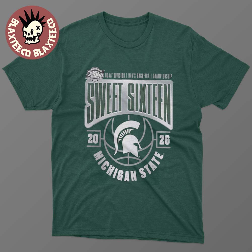 Michigan State Spartans Men’s Basketball 2026 NCAA March Madness Sweet 16 T-Shirt Features: