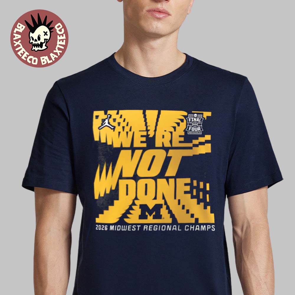 Blaxteeco: About Michigan Wolverines Jordan Brand 2026 Men’s Basketball NCAA Tournament Final Four We Are Not Done Midwest Regional Champions T-Shirt: