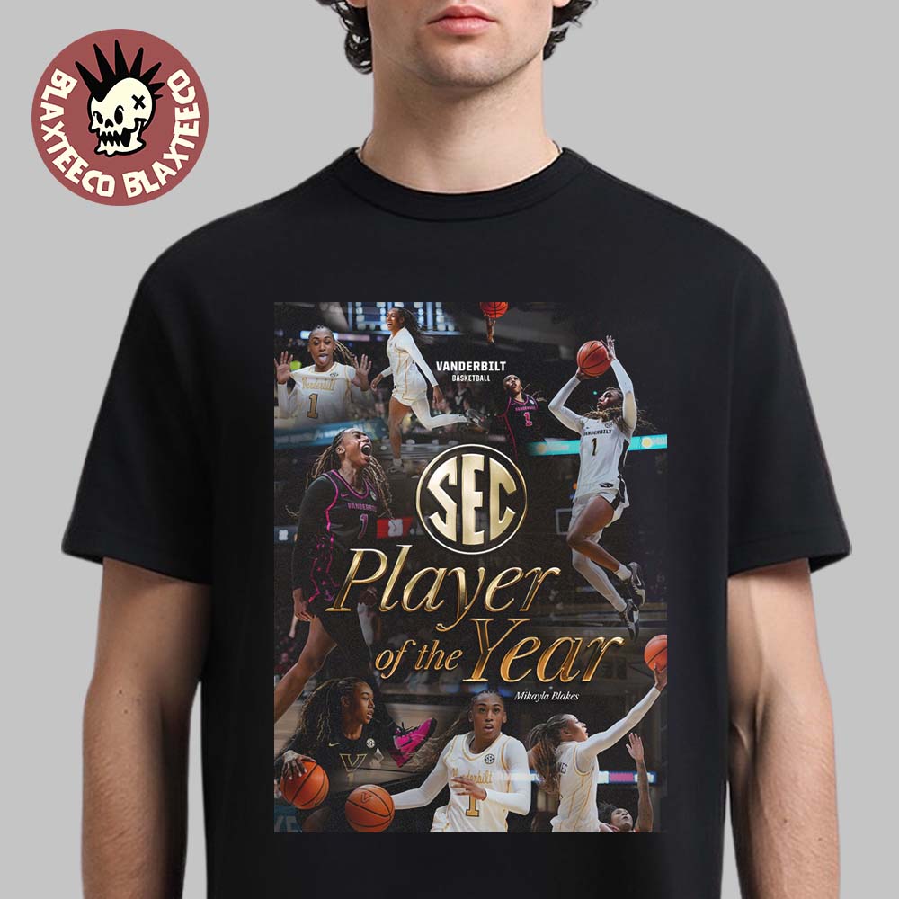 Mikayla Blakes Vanderbilt Commodores Women’s Basketball 2026 SEC Player Of The Year T-Shirt Features: