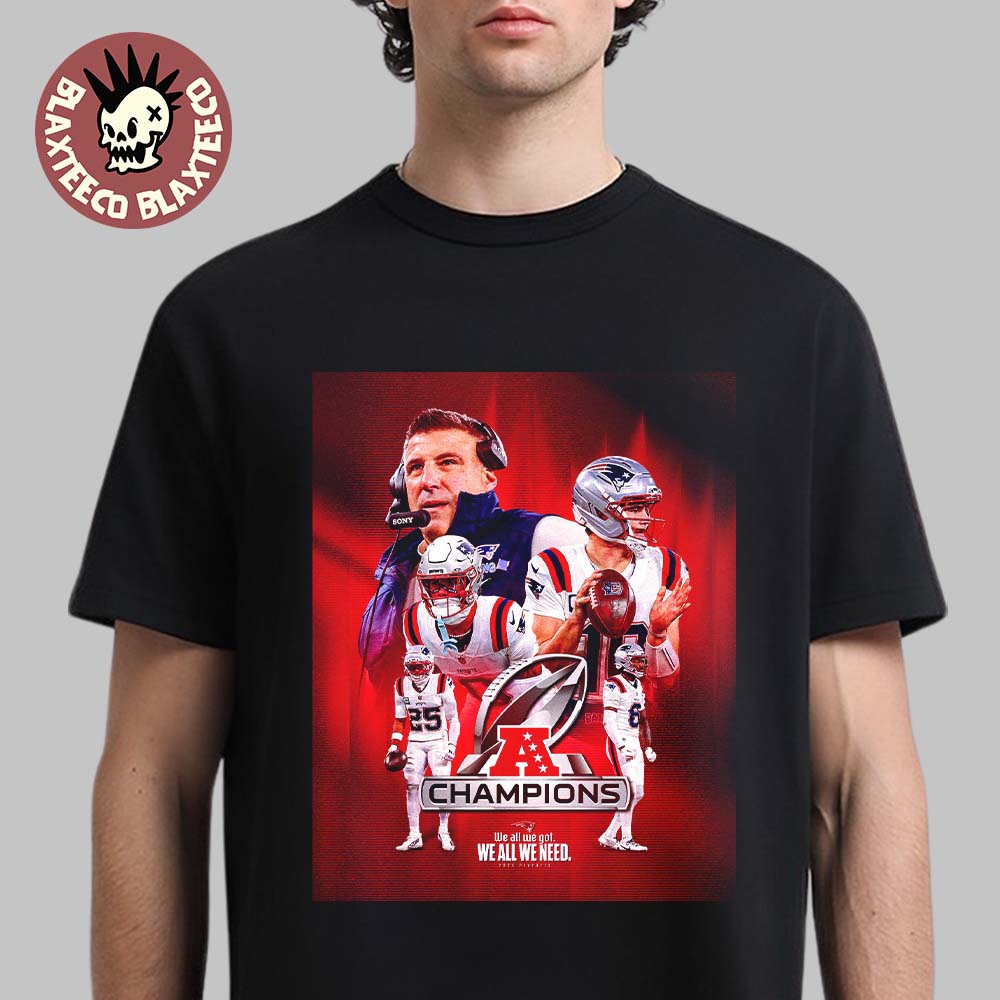 Blaxteeco: About New England Patriots 2025 2026 NFL AFC Champions We All We Got We All We Need Classic T-Shirt: