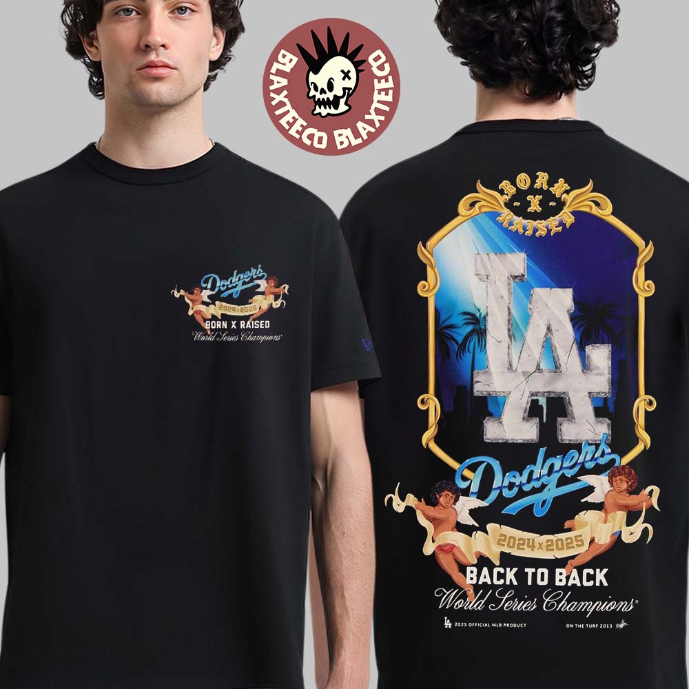 Blaxteeco: About New Era Los Angeles Dodgers X Born x Raised Angels Back To Back T-Shirt: