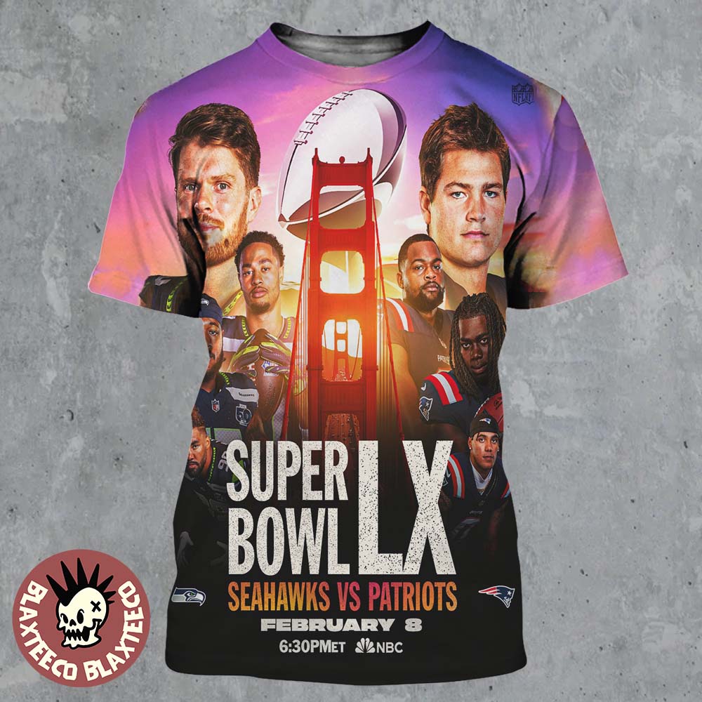 Blaxteeco: About NFL Super Bowl LX 2026 Seattle Seahawks Vs New England Patriots Matchup On February 8 2026 All Over Print Shirt Introduction: