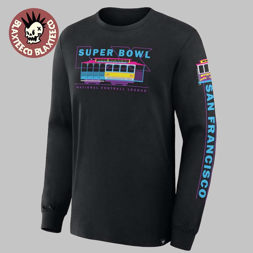 Blaxteeco: About NFL Super Bowl LX Nike San Francisco Bay Arena On February 8 2026 Trolley Car Long Sleeve T-Shirt: