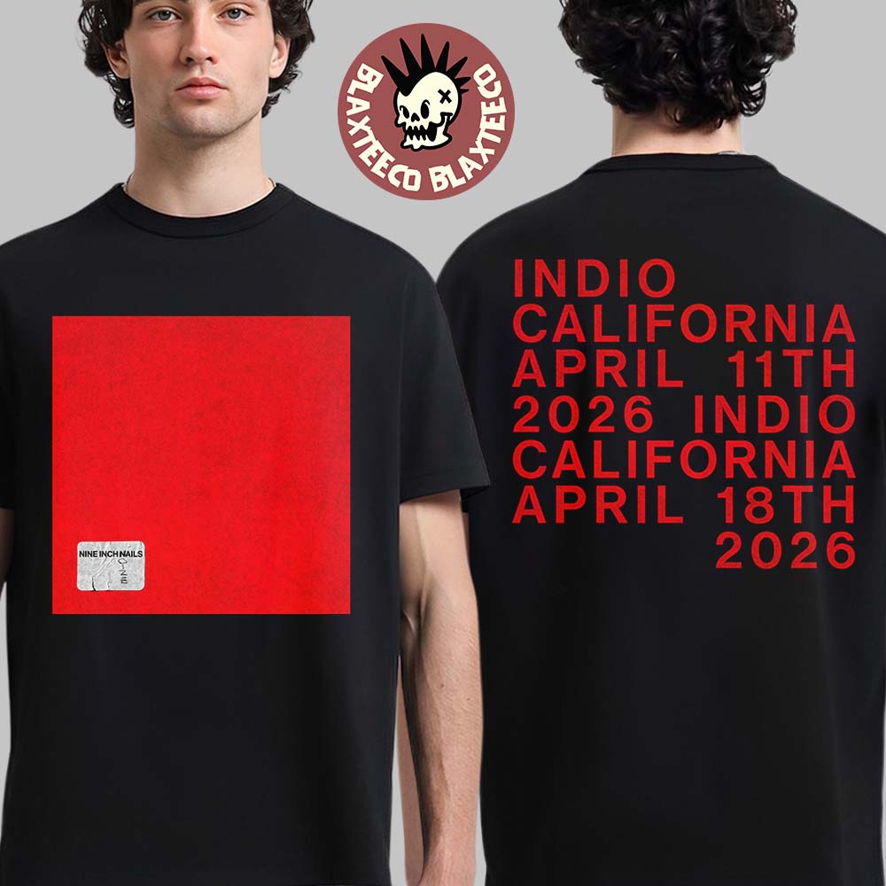 Channel industrial rock energy with the Nine Inch Nails Coachella 2026 Festival Indio California Merch April 11 And 18 2026 Two Sided T-Shirt. This bold black tee features a striking red square graphic on the front, inspired by the band’s iconic minimalist aesthetic, creating a powerful and instantly recognizable look. The back design delivers a strong visual impact with large red typography listing “Indio California” and the official Coachella 2026 dates, April 11th and 18th. The contrast of deep black fabric and vivid red print captures the raw intensity and edgy style that Nine Inch Nails fans love.