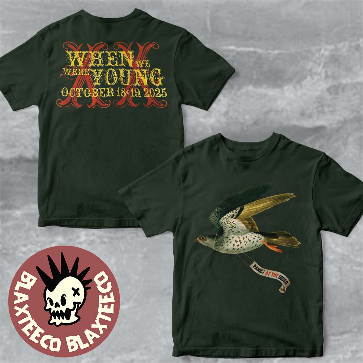 Blaxteeco: About Panic At The Disco When We Were Young Festival 2025 Exclusive Merch Tee On October 18-19 2025 In Las Vegas Pigeon T-Shirt: