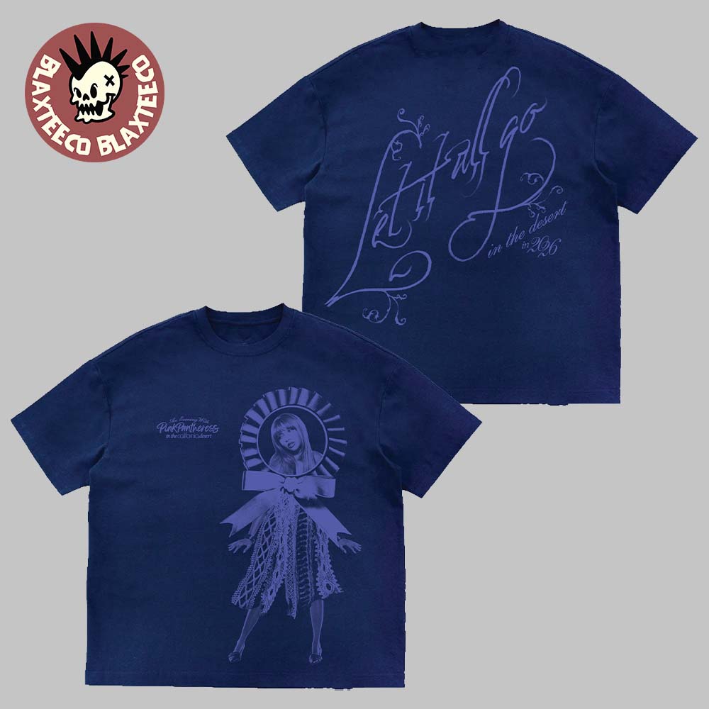 Celebrate music, style, and festival vibes with the PinkPantheress Coachella 2026 Festival Indio California Merch Let It All Go In The Desert T-Shirt. Designed for true fans and trendsetters, this exclusive tee captures the spirit of Coachella with a bold yet elegant aesthetic. The deep navy color creates a sleek backdrop for the soft lavender artwork, featuring a unique illustration and delicate script typography that reads “Let It All Go in the desert 2026.” Inspired by PinkPantheress’ ethereal sound and iconic presence, this shirt blends music culture with contemporary streetwear, making it a standout addition to any wardrobe.