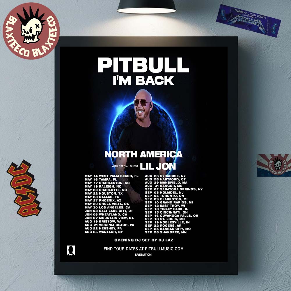 Bring high-energy swagger to your space with the Pitbull I'm Back North America Tour 2026 City Dates Wall Decor Poster Canvas, a bold tribute to Mr. Worldwide’s triumphant return to the stage.