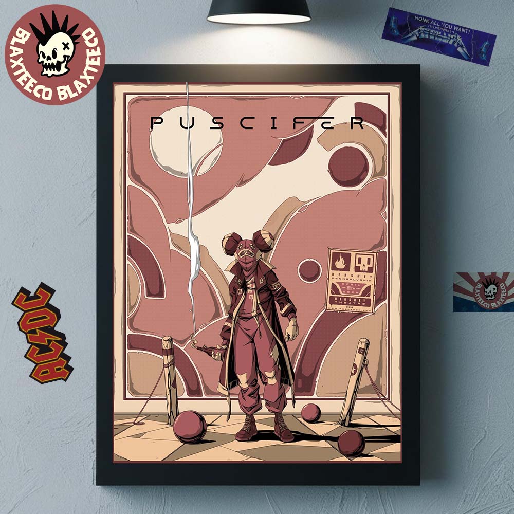 Elevate your space with the Puscifer Hershey Pennsylvania 2026 Gig Poster At Hershey Theatre On April 8 2026 The Normal Isn't Tour Poster Canvas, a visually captivating piece that commemorates an unforgettable night at Hershey Theatre on April 8, 2026 during The Normal Isn’t Tour. This unique artwork features a surreal, stylized design with warm earthy tones, abstract planetary shapes, and a mysterious central character that perfectly reflects Puscifer’s avant-garde aesthetic. The bold “Puscifer” typography combined with intricate visual storytelling creates a poster that feels both artistic and collectible, making it a standout addition for fans of the band and modern graphic art alike.