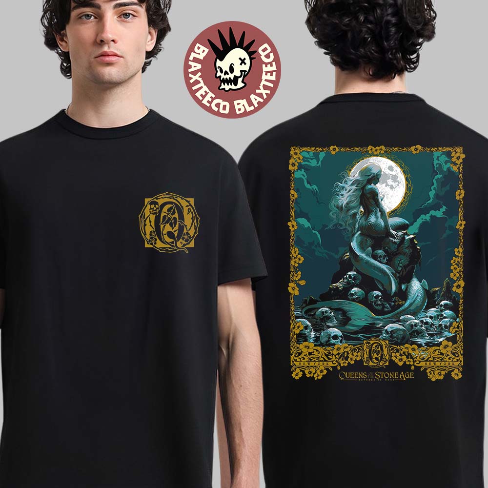 Blaxteeco: About Queens Of The Stone Age New York 2025 Event Poster At Beacon Theatre On October 10 2025 The Death Mermaid Art Two Sided T-Shirt: