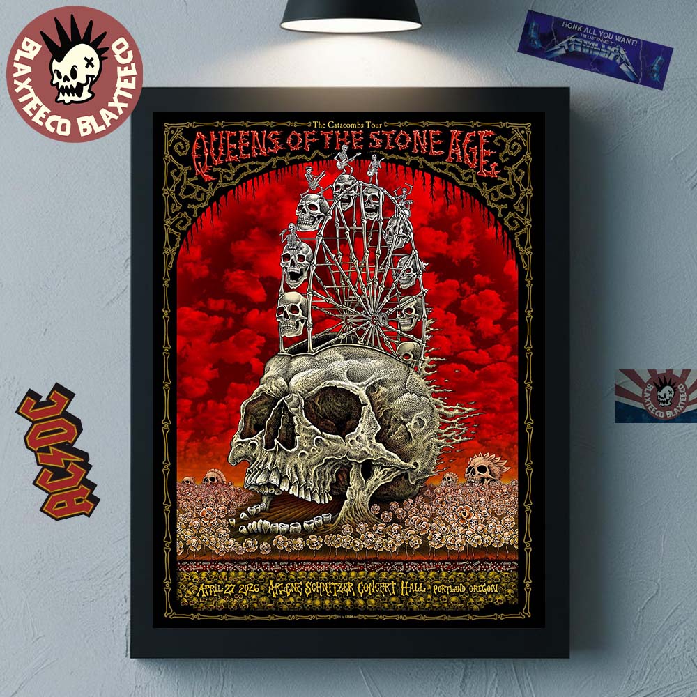 Blaxteeco: About Queens Of The Stone Age Portland Oregon 2026 Venue Poster At Arlene Schnitzer Concert Hall On April 27 2026 Skulls Wheel Art Poster Canvas Introduction