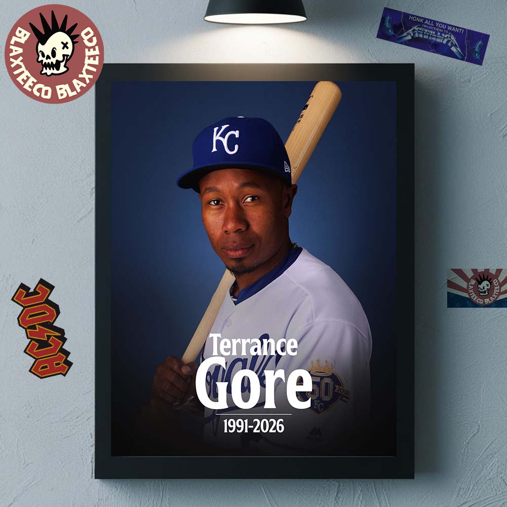Honor a lasting legacy with the RIP Terrance Gore 1991-2026 Rest In Peace Thank You For The Memories Poster, a powerful tribute designed for fans who want to remember and celebrate an unforgettable baseball journey. This memorial poster features a striking portrait of Terrance Gore in his Kansas City uniform, bat resting on his shoulder, capturing confidence, focus, and pride. The clean typography with his name and years, paired with a dark, elegant background, creates a respectful and emotional design that stands out in any space. Professionally printed with high-quality inks, this poster delivers sharp detail, rich color, and long-lasting durability, making it a meaningful piece of wall art.