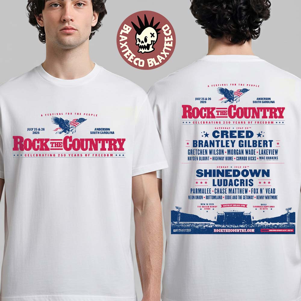 Blaxteeco: About Rock The Country Celebrating 250 Years Of Freedom Full Lineup In Anderson South Carolina On July 25 And 26 2026 Two Sided T-Shirt: