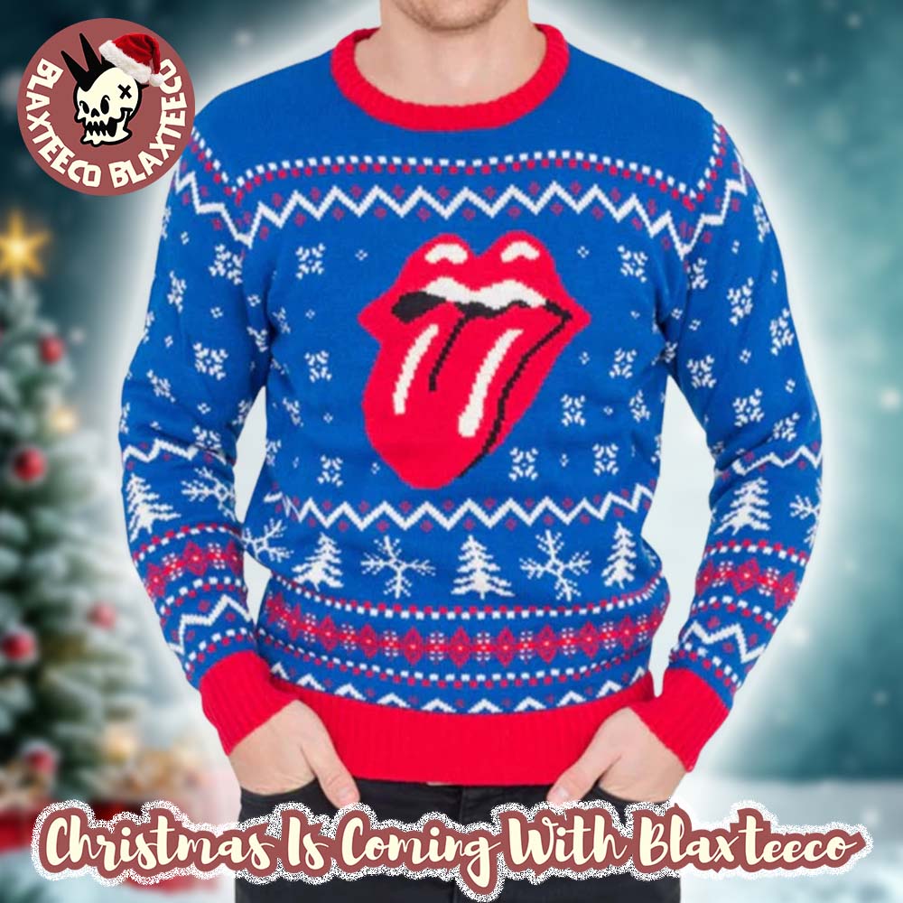 Blaxteeco: About Rolling Stones Tongue Logo Retro Style 2025 Knitted Blue Ugly Christmas Sweater: