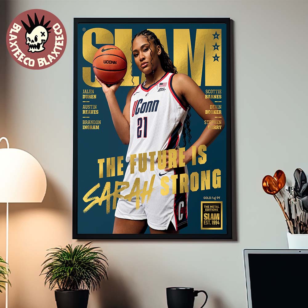SLAM 260 Sarah Strong Uconn Huskies The Future Is Sarah Strong Rising Star Magazine Cover Gold Metal Edition Poster Canvas is a premium, collector-level tribute to one of college basketball’s brightest rising stars. Showcasing Sarah Strong in her UConn Huskies uniform, this special edition elevates the iconic SLAM magazine cover with rich gold accents and a bold, modern finish.