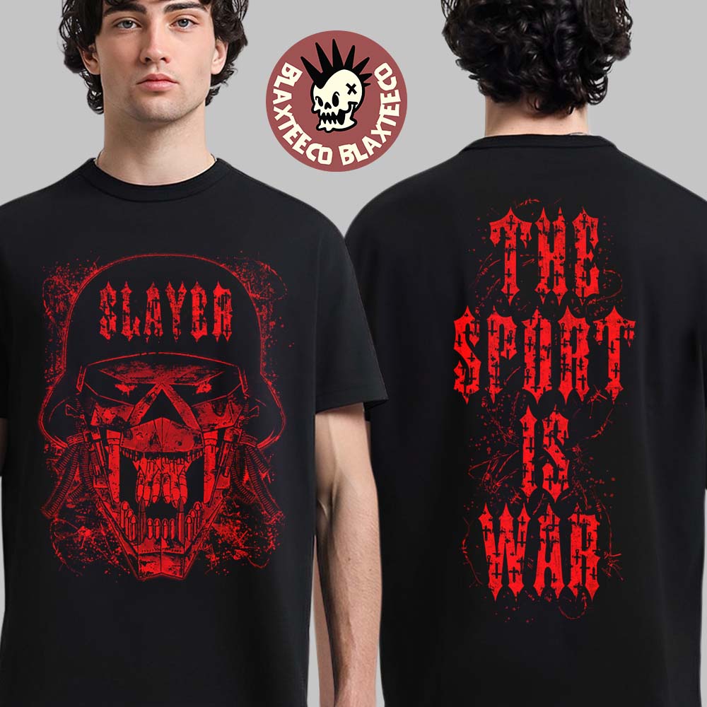 Blaxteeco: About Slayer Seasons In The Abyss 35th Anniversary Collection Sport Is War Skull Two Sided T-Shirt: