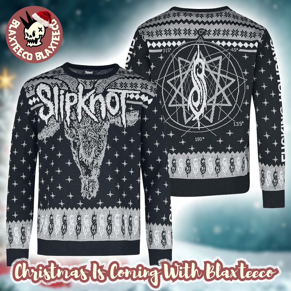 Slipknot Fucking Holidays Logo Goat Head And Trinal S Logo Blink Pattern Black And Grey Ugly Christmas Sweater Features: