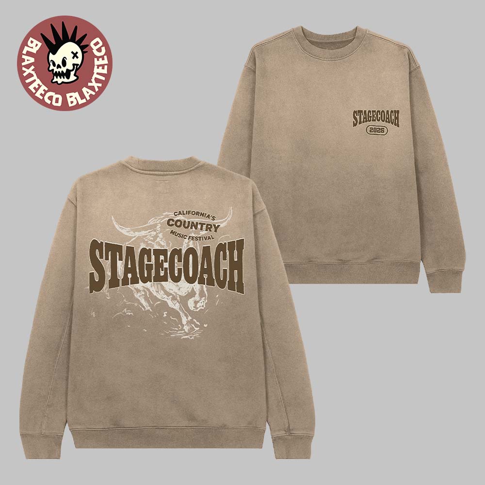 Embrace bold Western spirit with the Stagecoach 2026 Festival Indio California's Country Music Festival Merch By The Horns Sweatshirt. Featuring a rugged and iconic design, this sweatshirt highlights a powerful longhorn graphic paired with bold “Stagecoach” lettering, capturing the untamed energy of California’s premier country music festival. The earthy, neutral tone adds a vintage desert-inspired feel, making it easy to style while staying true to authentic country roots. Crafted from soft, high-quality fabric, this sweatshirt delivers warmth and comfort, perfect for cool festival nights or relaxed everyday wear.