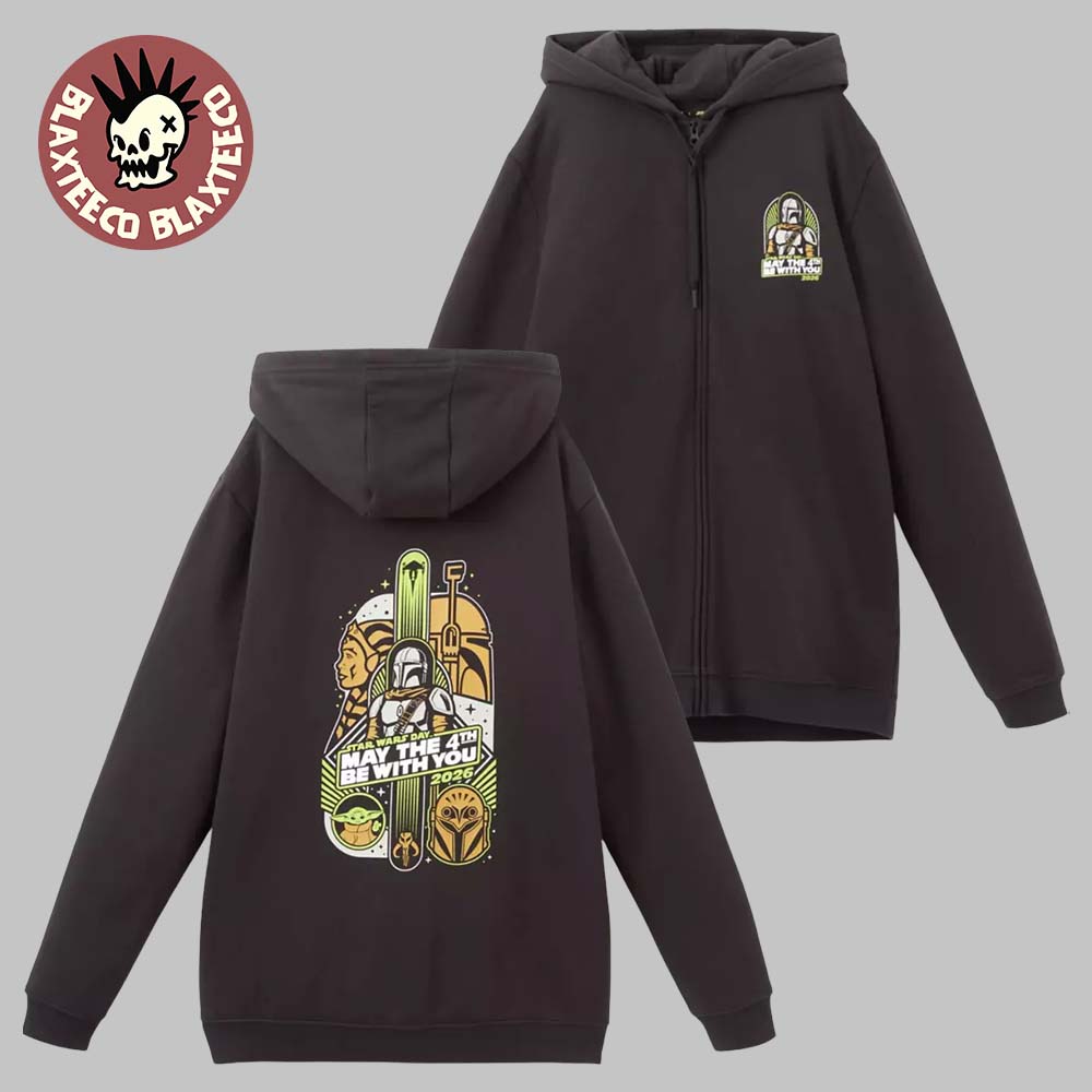Star Wars May The 4th Be With You Star Wars Day 2026 The Mandalorian and Grogu Zip Up Hoodie Features: