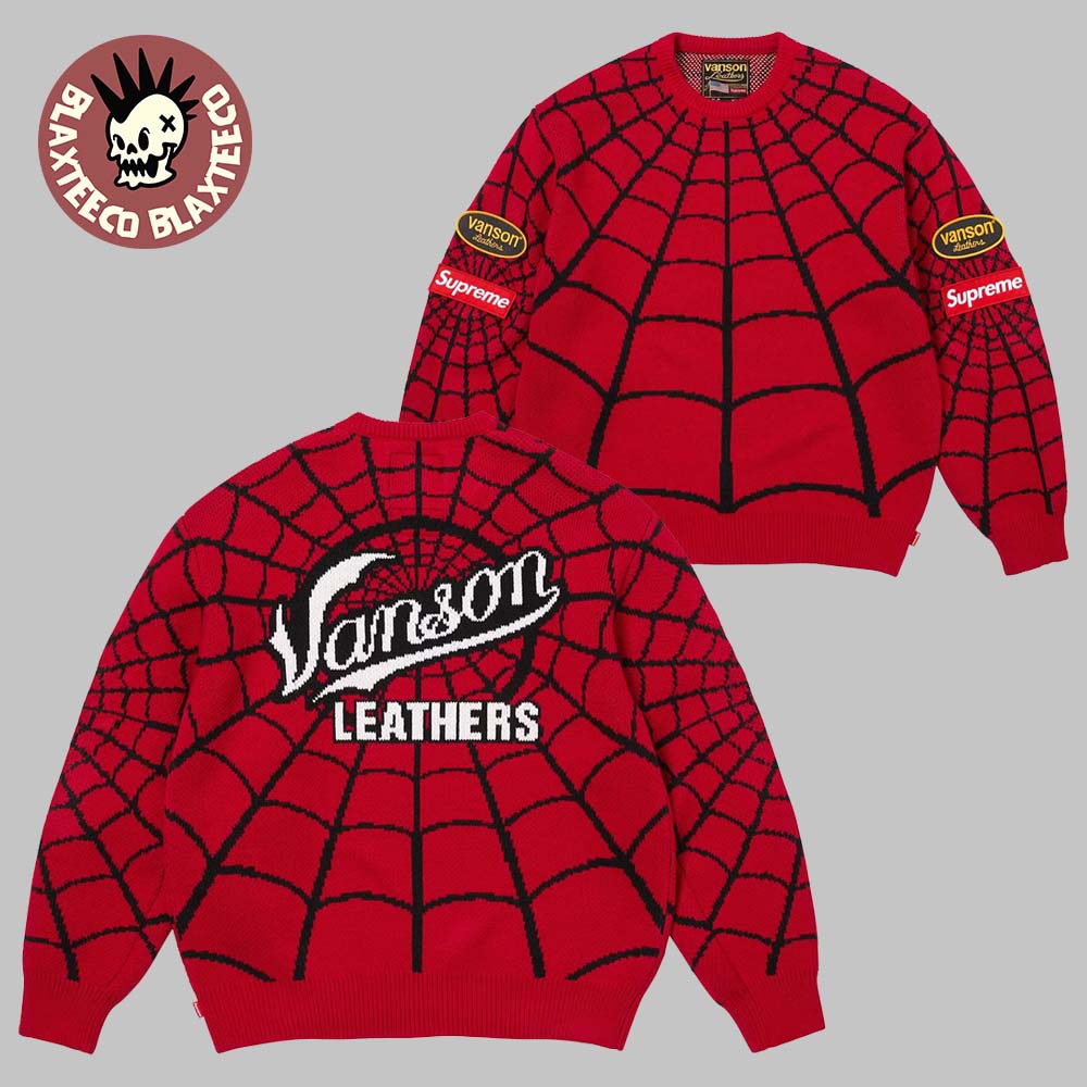 Blaxteeco: About Supreme x Spider-Man Vanson Leather Red Knitted Sweater: