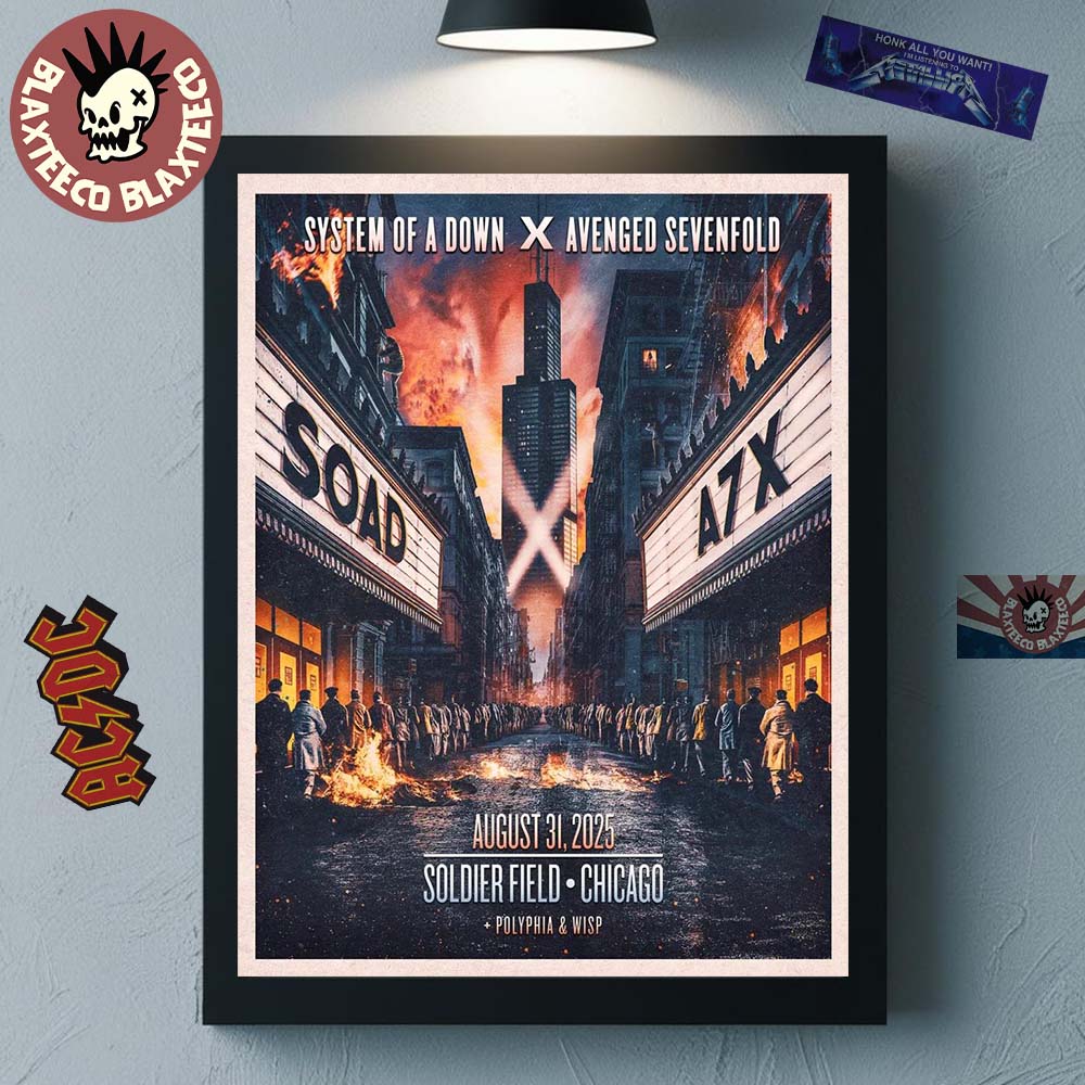 Blaxteeco: About System Of A Down X Avenged Sevenfold Chicago 2025 Venue Poster At Soldier Field On August 31 And September 1 2025 Home Decor Poster Canvas Introduction