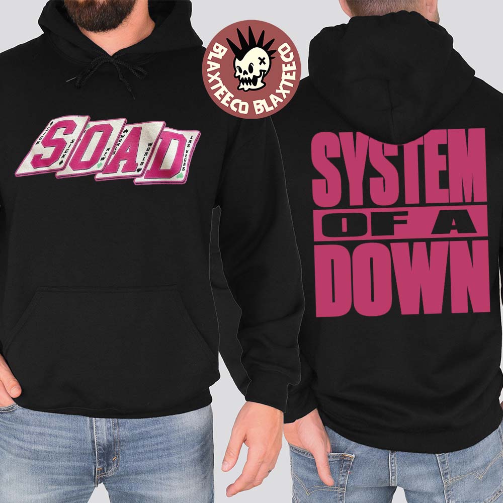 The back design makes an even louder statement with oversized “System Of A Down” lettering in vibrant pink, ensuring you stand out from every angle. Crafted from premium materials with a soft interior lining, adjustable drawstring hood, and relaxed fit, this hoodie offers both warmth and style. Whether you were part of the Las Vegas festival or simply a fan of heavy music culture, this 2026 merch hoodie is more than apparel—it’s a bold tribute to one of the most iconic bands and an unforgettable live event.