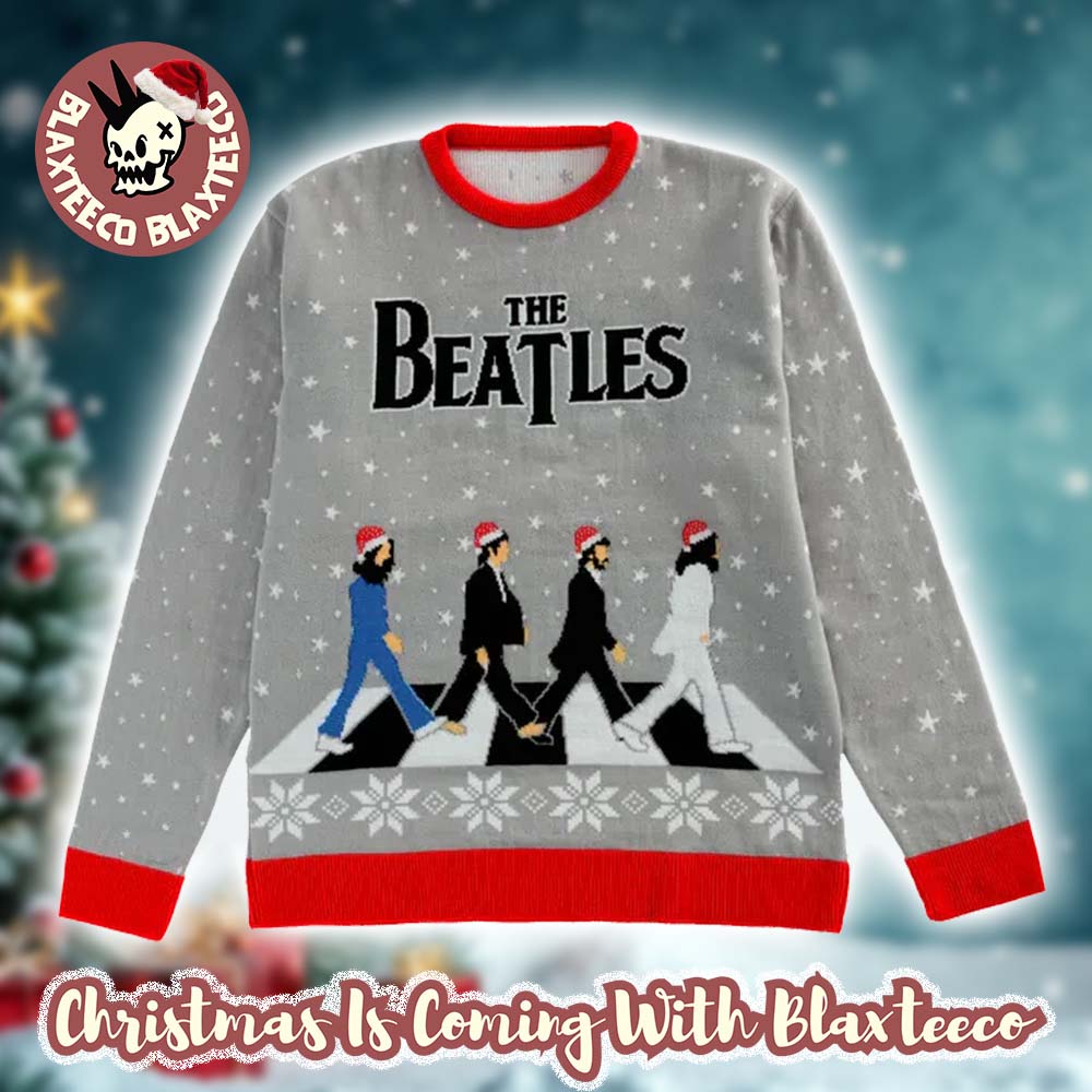 Blaxteeco: About The Beatles Iconic Abbey Road Band Members With Santa Hats Snowy Street Grey Ugly Christmas Sweater: