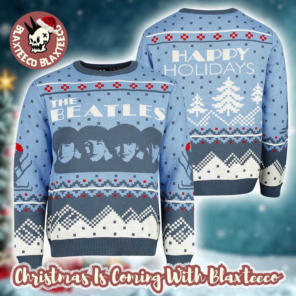Blaxteeco: About The Beatles Young Band Members Happy Holidays Blue Ugly Christmas Sweater Jumper: