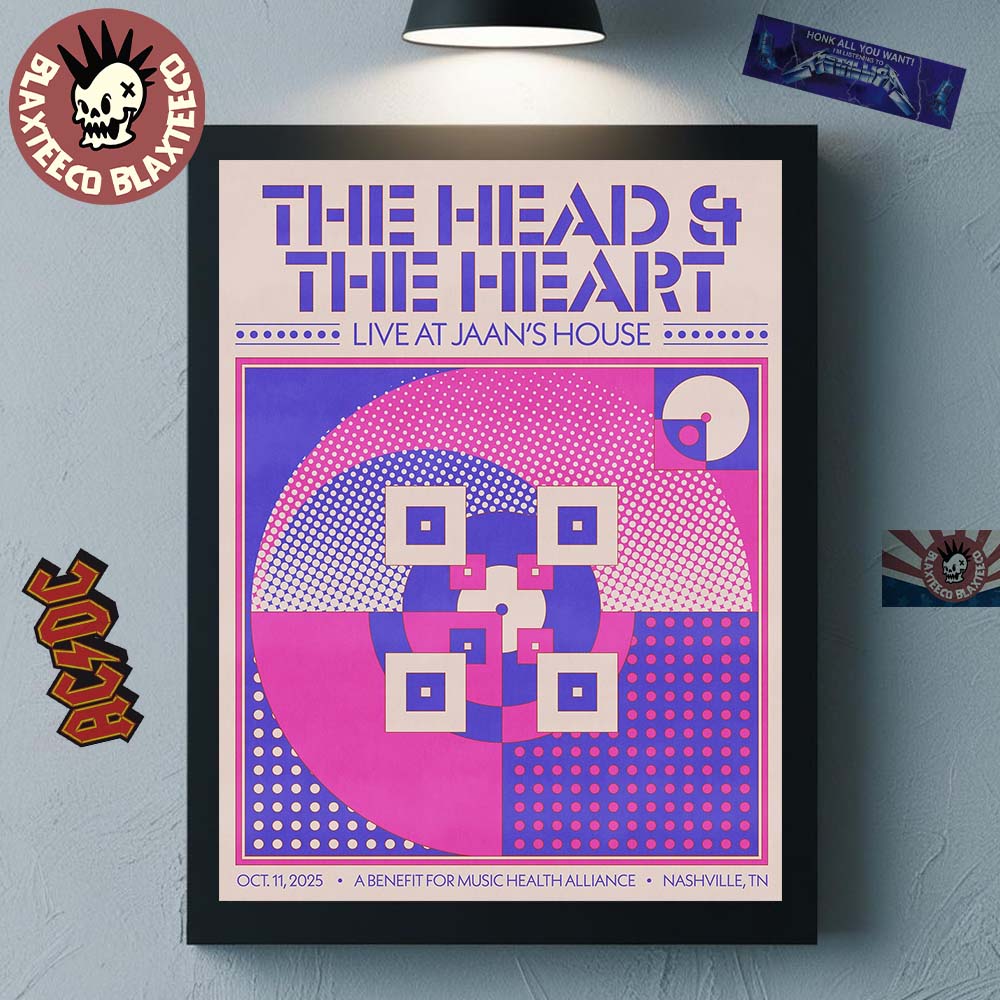 Blaxteeco: About The Head And The Heart Nashville Tennessee 2025 Gig Poster Live At Jann's House A Benefit For Music Health Alliance On October 11 2025 Poster Canvas Introduction