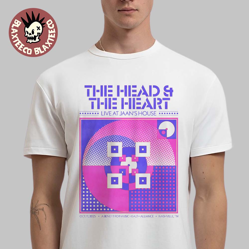 The Head And The Heart Nashville Tennessee 2025 Gig Poster Live At Jann's House A Benefit For Music Health Alliance On October 11 2025 T-Shirt Features: