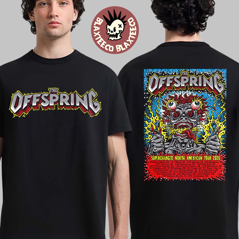 Blaxteeco: About The Offspring Supercharged North American Tour 2026 With Dates Official Tour Poster Two Sided T-Shirt: