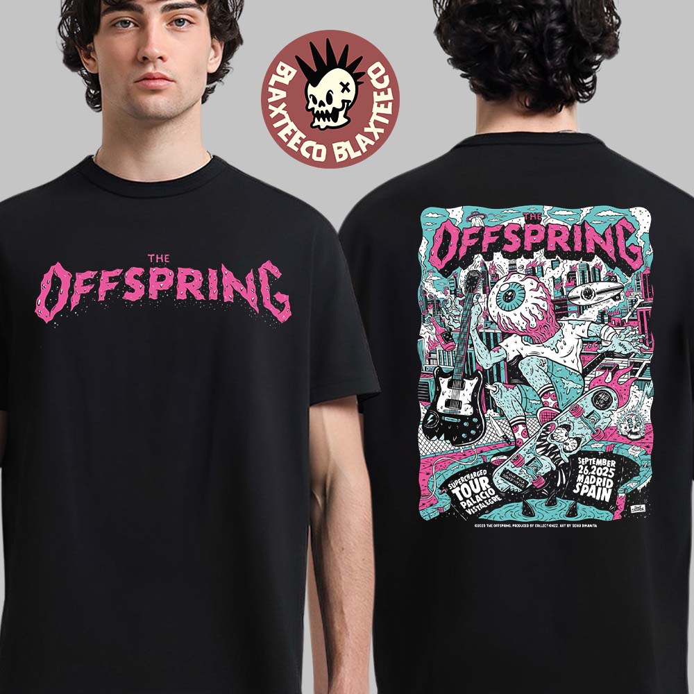 Designed for fans who want to celebrate the Madrid 2025 concert experience, this t-shirt is an ideal gift for collectors, music lovers, and tour enthusiasts. With its eye-catching graphics, comfortable fit, and officially inspired tour design, it’s a versatile addition to any wardrobe. Whether you’re attending a show, hanging out with friends, or reminiscing about the unforgettable night at Palacio Vistalegre, this Offspring Supercharged Tour merch makes a bold statement. Don’t miss the chance to own a piece of the 2025 tour excitement and elevate your fan collection with this premium two-sided t-shirt.