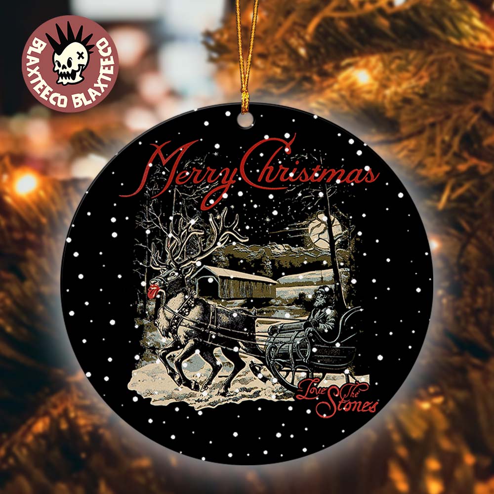 Blaxteeco: About The Rolling Stones Merry Christmas 2025 Reindeer Sleigh Love The Stones Christmas Tree Decorations Ceramic Ornament Introduction: