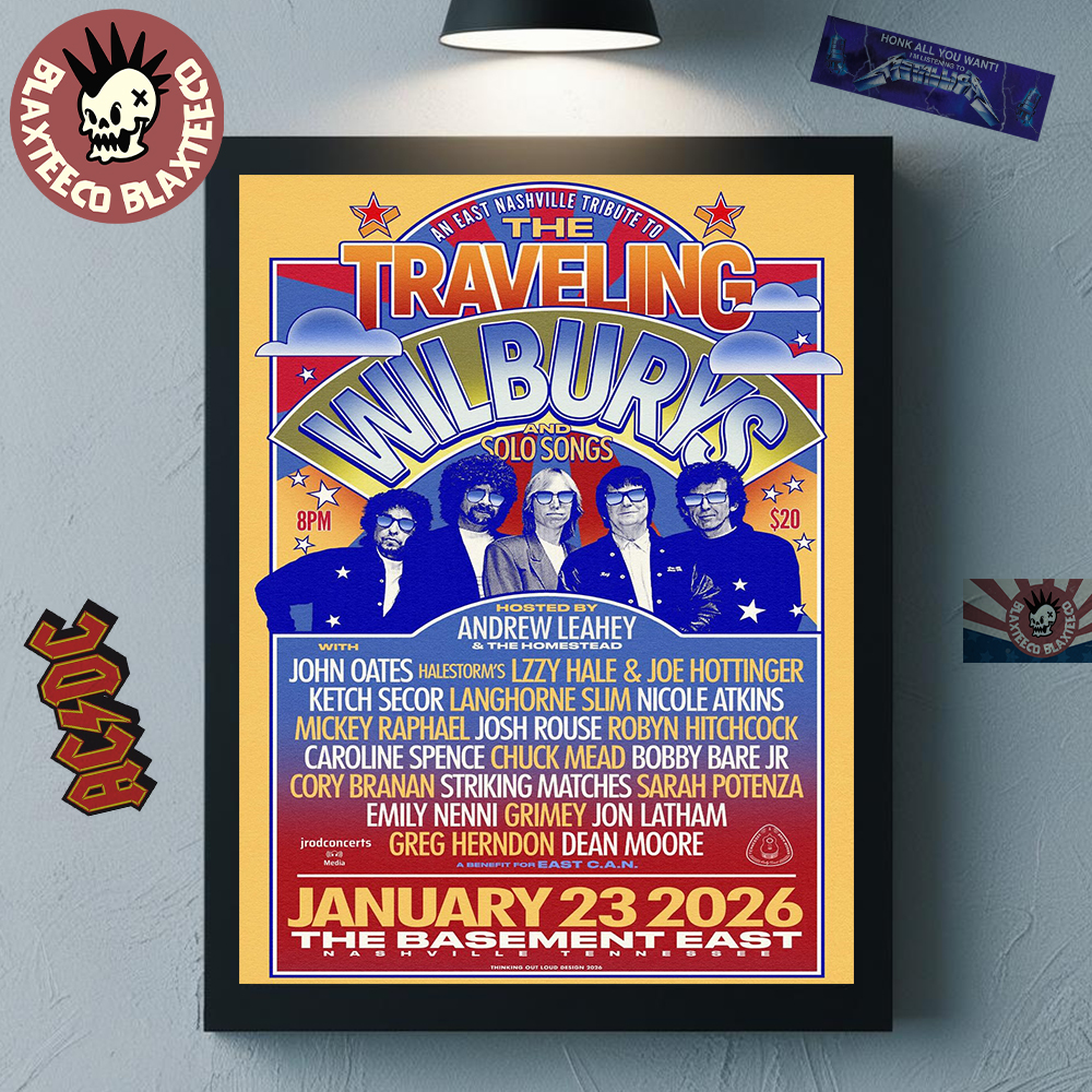 The Traveling Wilburys Nashville Tennessee 2026 Event Poster At The Basement East On January 23 2026 Home Decor Poster Canvas is a vibrant tribute to an unforgettable tribute concert held at The Basement East on January 23, 2026. Designed in a bold, retro-inspired style, this artwork celebrates the spirit and legacy of The Traveling Wilburys with colorful typography, vintage motifs, and a lively lineup presentation that captures the heart of classic rock storytelling. The Nashville-themed design reflects the city’s deep musical roots while honoring the timeless influence of the Wilburys, making this poster a standout piece of concert memorabilia and visual art.