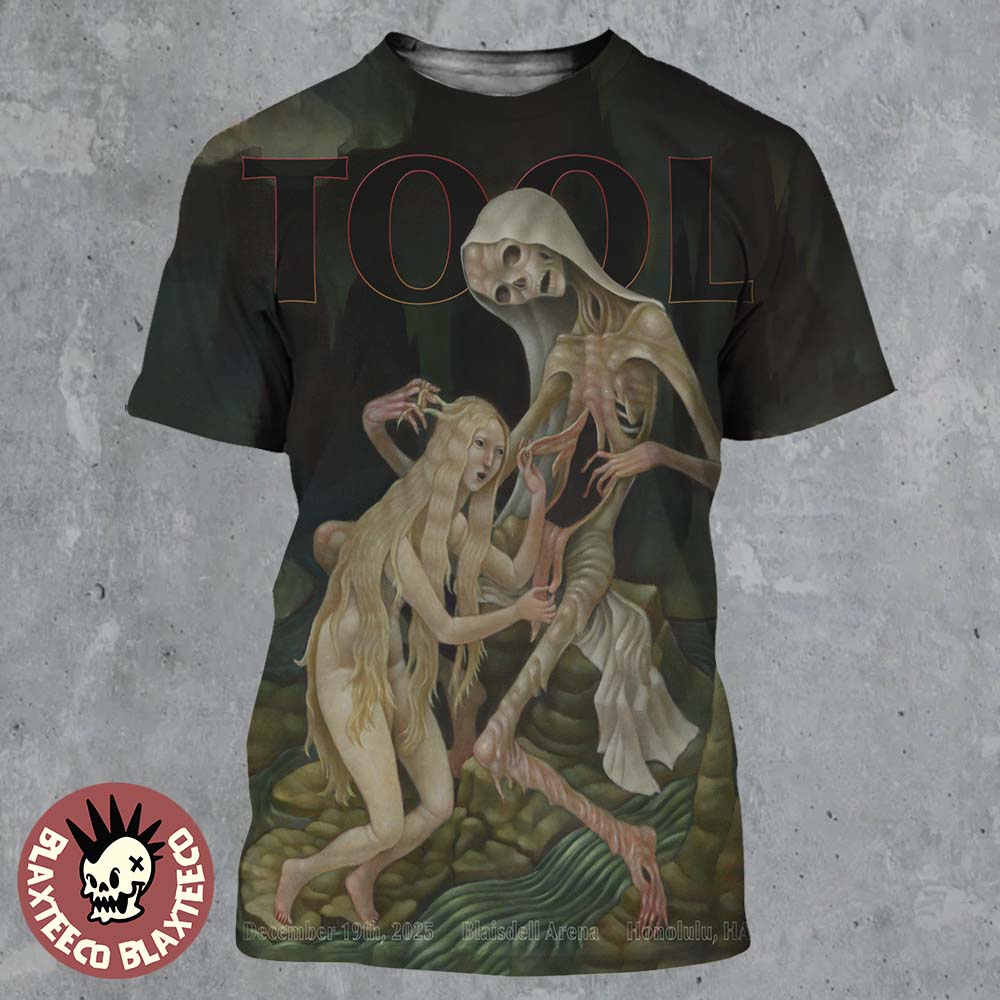 Celebrate an iconic live performance with the Tool Honolulu Hawaii 2025 Night 1 Event Poster At Blaisdell Arena On December 19 2025 All Over Print Shirt, inspired by the unforgettable show at Blaisdell Arena on December 19, 2025. This premium all-over print design features the haunting, surreal artwork from the official event poster, covering the entire shirt for a bold and immersive visual impact. The dark fantasy imagery, rich textures, and symbolic figures perfectly reflect Tool’s signature aesthetic—mysterious, emotional, and deeply artistic. Crafted with high-quality fabric and advanced printing technology, this shirt delivers vibrant detail, smooth color transitions, and long-lasting durability while remaining lightweight and comfortable for everyday wear.