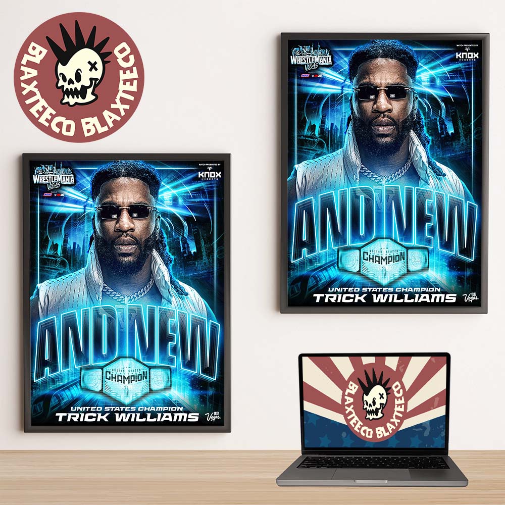 Celebrate the rise of a new champion with this electrifying Trick Williams And New WWE United States Champion In Wrestlemania 42 Vegas Poster Canvas. This eye-catching artwork captures the charisma and confidence of Trick Williams as he claims championship glory on one of WWE’s biggest stages. Featuring bold “AND NEW” typography and a glowing championship belt at the center, the design is enhanced by a futuristic Las Vegas skyline that adds energy and excitement. Perfect for WWE fans and collectors, this poster immortalizes a breakthrough WrestleMania 42 moment, making it a standout addition to any wrestling memorabilia collection.