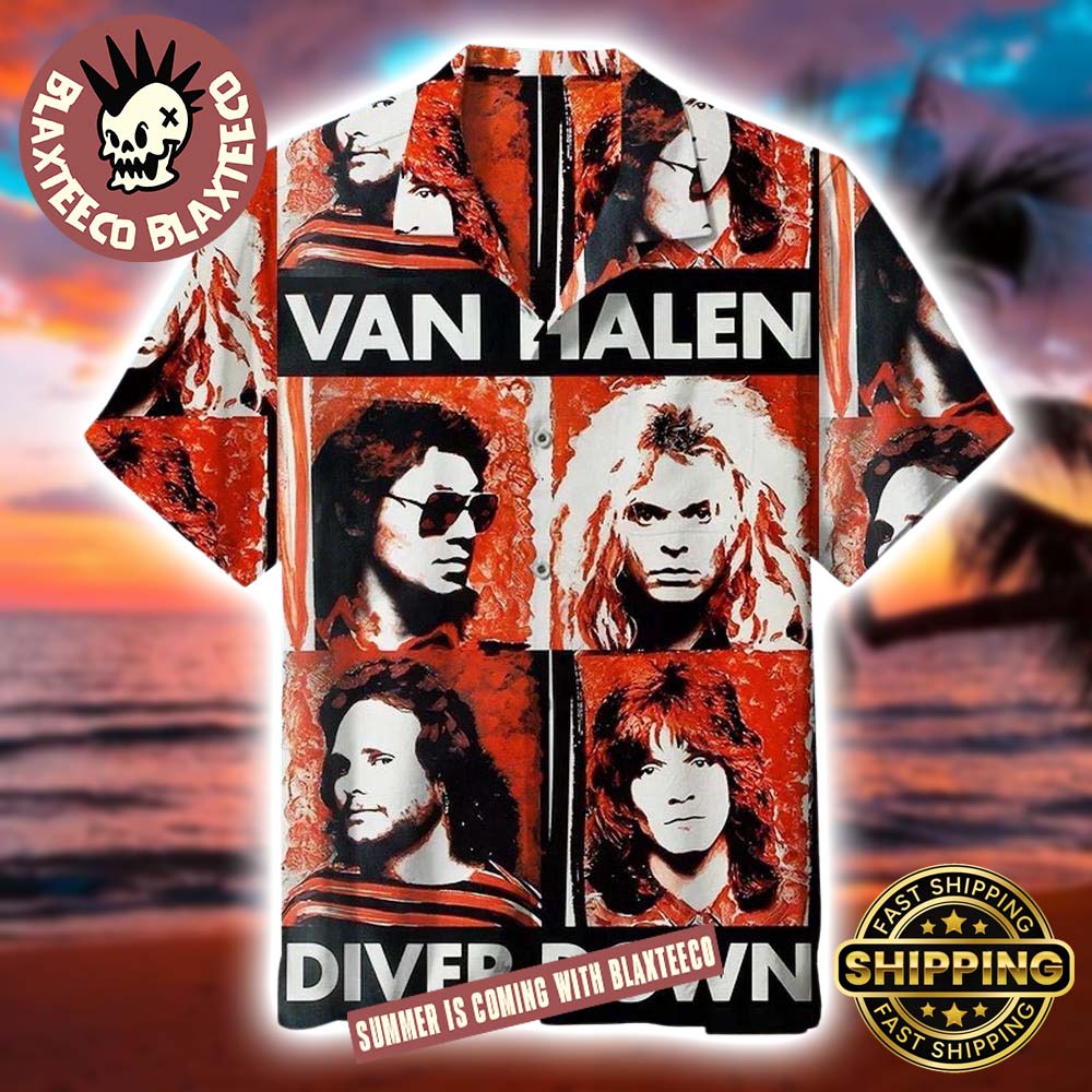Blaxteeco: About Van Halen Diver Down All Band Member Portrait Red Hawaiian Shirt 2025 For Fans Introduction: