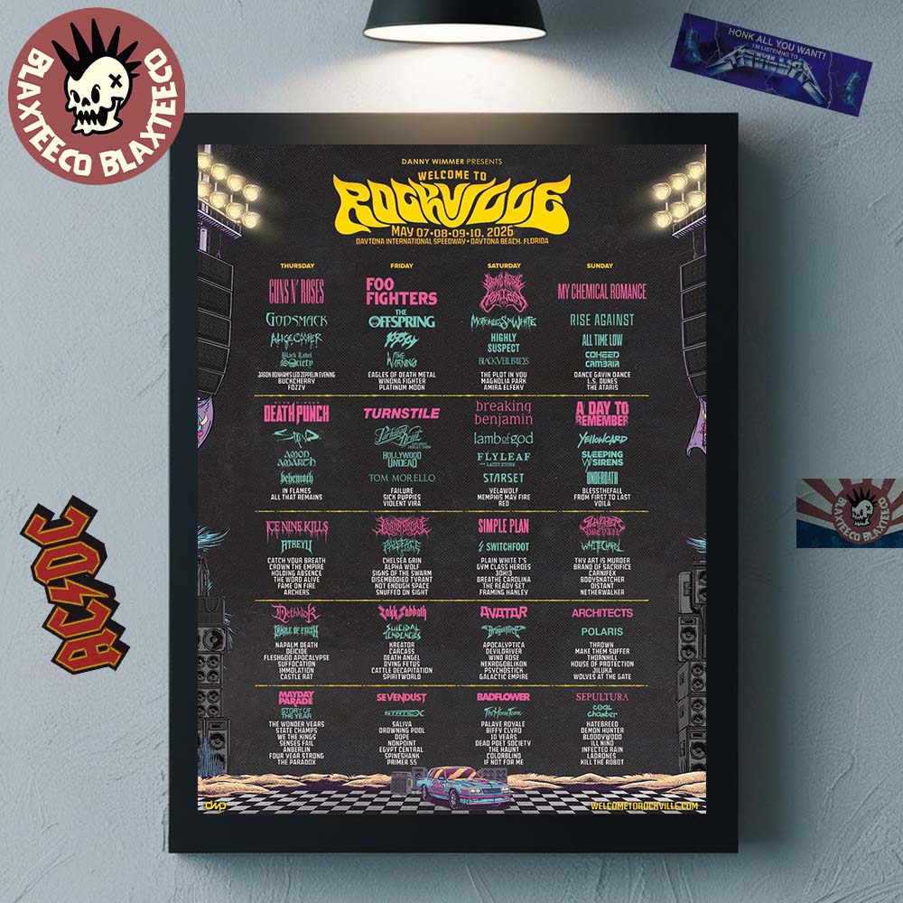 Welcome To Rockville 2026 In Daytona Beach Florida Full Lineup At Daytona International Speedway From May 7 To 10 2026 Home Decor Poster Canvas Features: